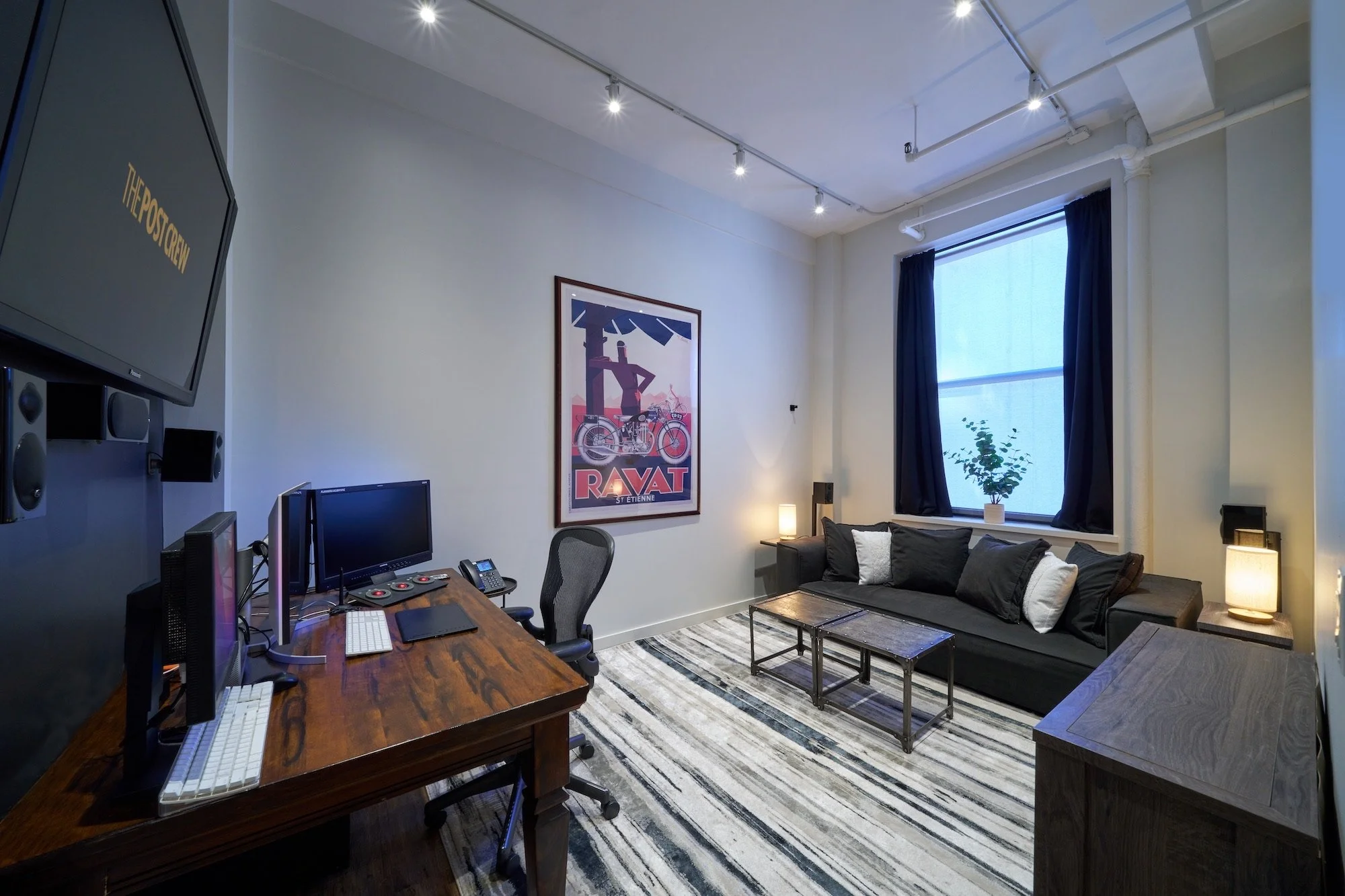 In addition to our award-winning in-house editorial staff, we make our facilities available to producers and clients who want access to top-tier resources while bringing in their own team or support staff. Whether you’re starting a rough cut, finishing a project, or looking for a long-term creative home, we offer post-production office space rentals to fit your needs. Our facility includes dedicated mixing, recording, color, and edit rooms, along with assistant space, all designed to connect seamlessly to our centralized media storage. Located in NoMad, our studio is surrounded by convenient commuting rail options and an excellent selection of food and coffee options. Designed with a modern aesthetic, our space provides a professional, comfortable environment for projects of any scale. Let our home be your home.